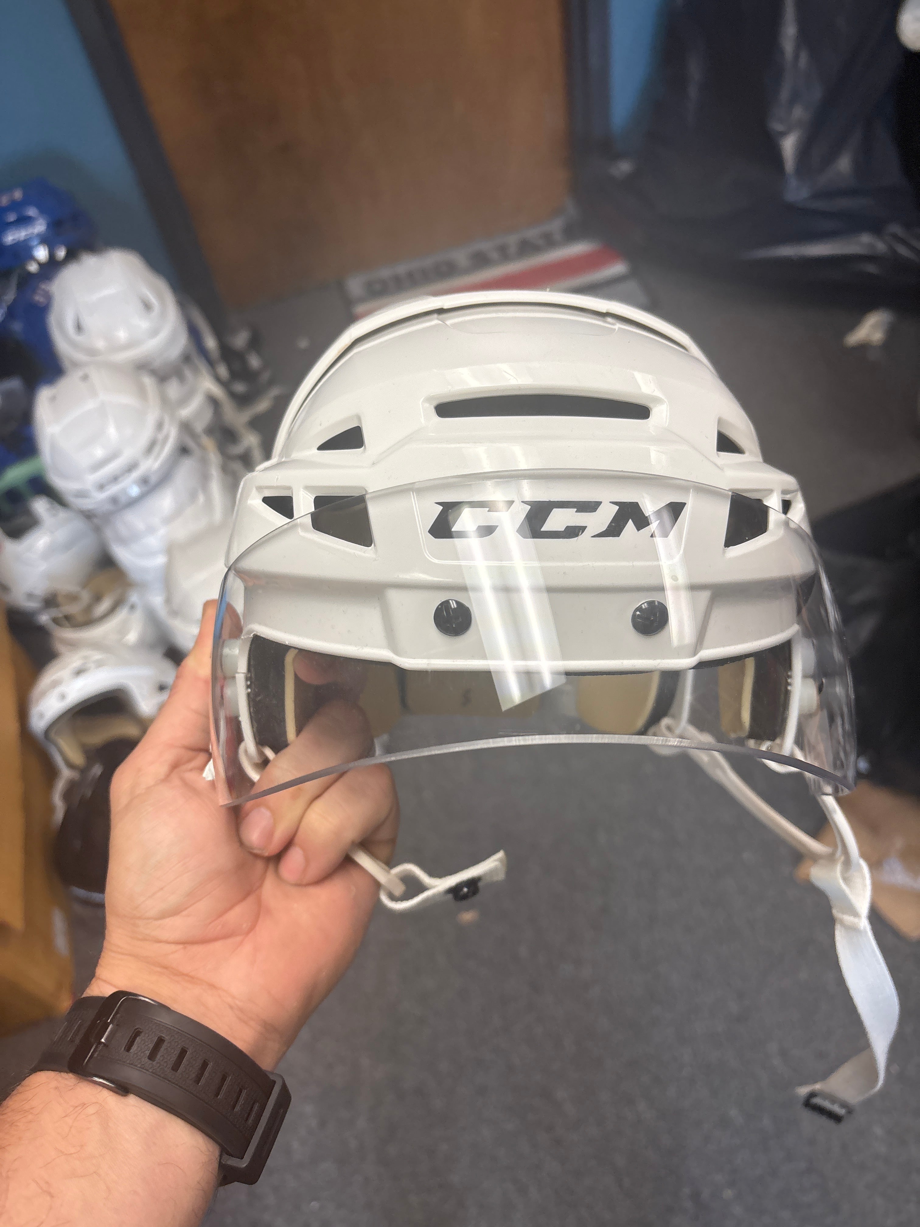 #18 Used CCM White V08 Helmet with Visor - Small