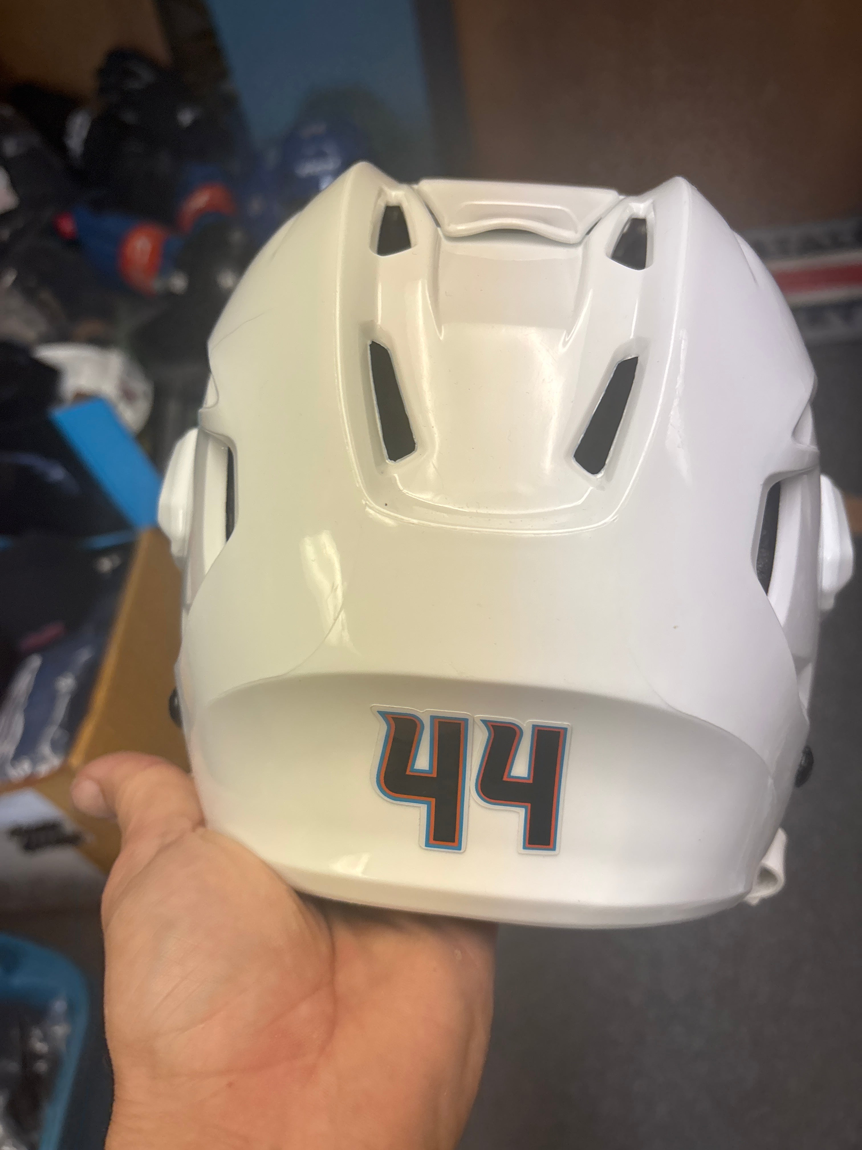 #44 White San Diego Gulls Used Bauer Reakt Helmet - Small